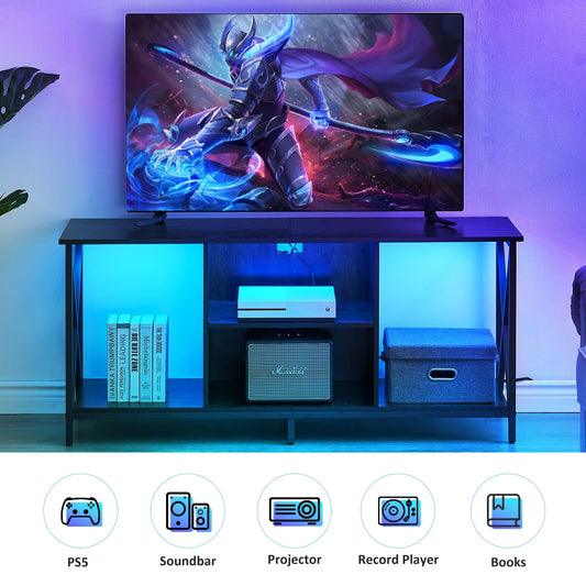 TV Stand for TV up to 65 Inches, TV Console Table with Led Lights & Power Outlets, Black
